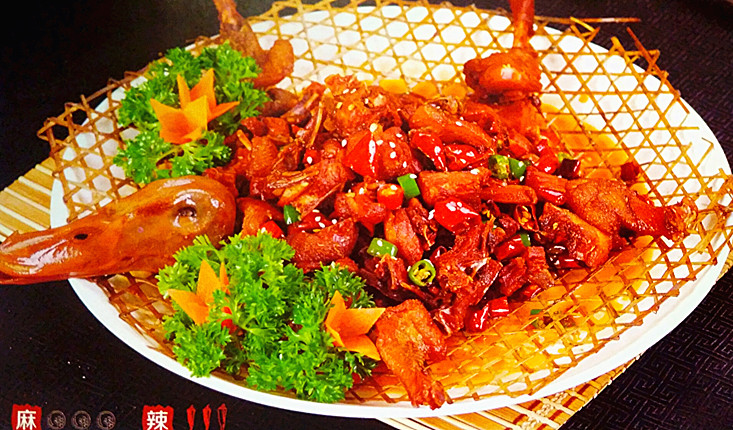 原料:鸭子一只,尖椒50克,蜂蜜25克