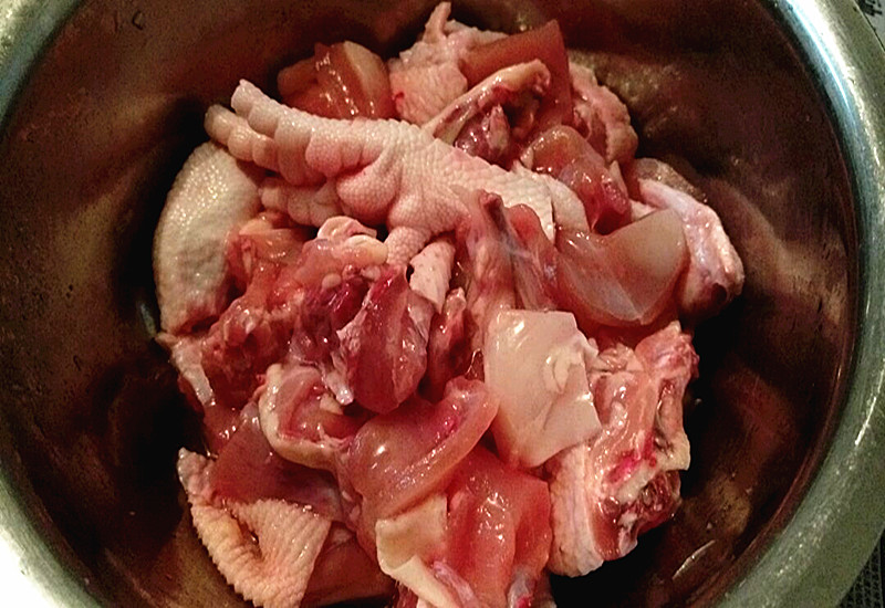 1.大公鸡处理干净,剁成块放入盆中,然后依次放入花椒粉、白酒、少量盐和老抽,用手抓匀腌制30分钟。