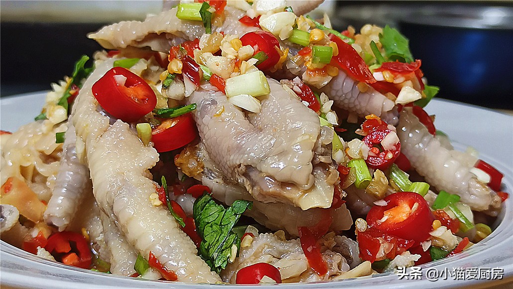 嗨@大家好!我是“小猫爱厨房”的小猫,今天又和大家见面了,分享生活、分享美食、分享快乐!今天小猫给大家带来的是一道“凉拌鸡爪”的做法,这是一道鲜香酸辣,爽口好吃的下饭下酒菜,大家要是喜欢吃鸡爪的话,可以试一试这道凉拌鸡爪的做法。