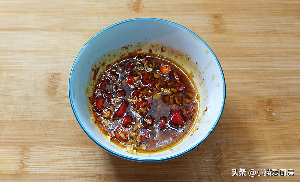 【凉 拌 调 料】:大蒜2瓣、小米辣2个、辣椒面1勺、生抽2勺、香醋2勺、鸡精1勺、白糖1勺