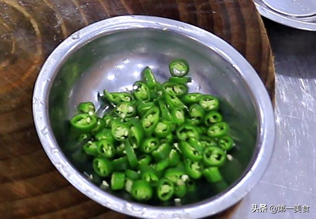 准备线椒几个,清洗干净,切成圈。