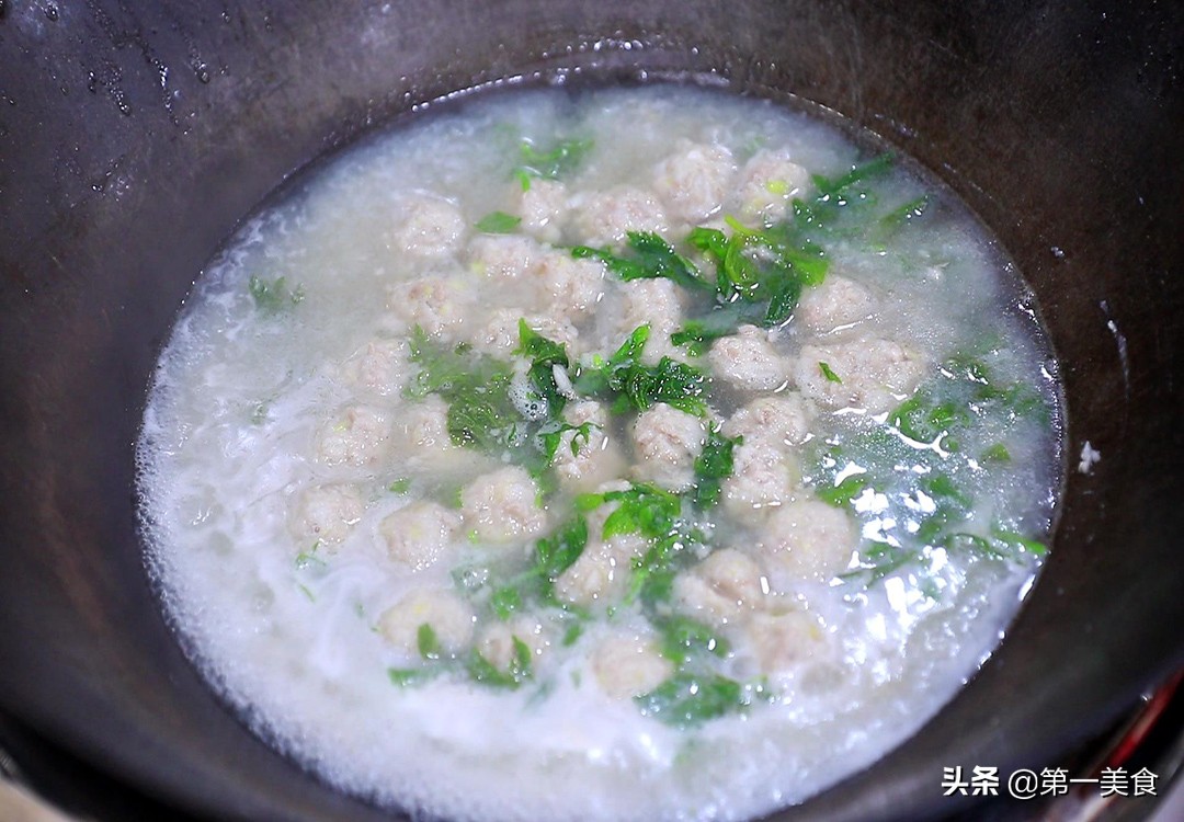 锅内烧水,家里有高汤的用高汤更加浓香,水烧开以后转微小火,抓一把馅料 在虎口处挤成丸子,用小勺挖入锅中,如果粘勺子可以蘸一点清水。