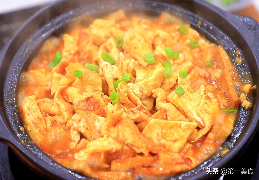 然后把料汁盛放在砂锅中,大火烧开以后倒入煎好的鸡蛋,盖上锅盖焖煮5分钟让豆腐和鸡蛋吸收汤汁入味