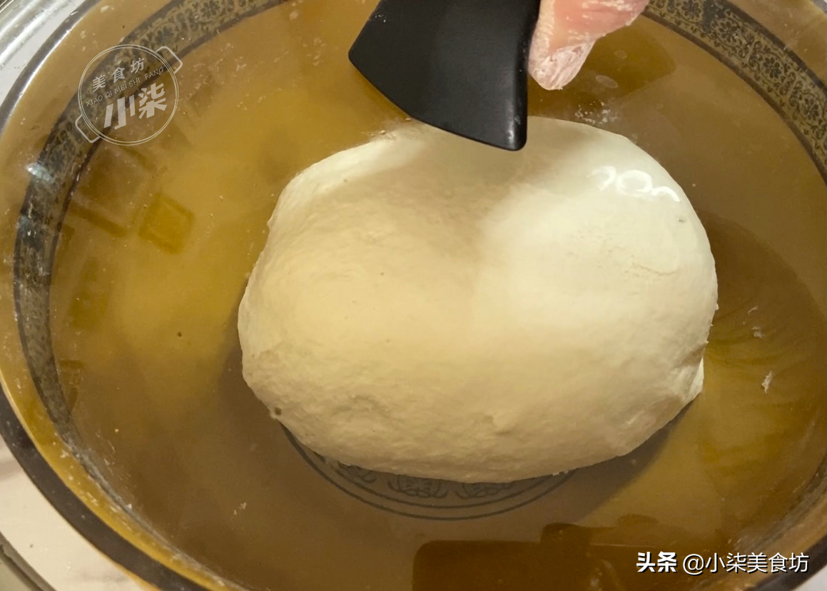6、这时面已经醒好了,不需要醒得太大,案板上抹上食用油防粘,把面团移到案板上。
