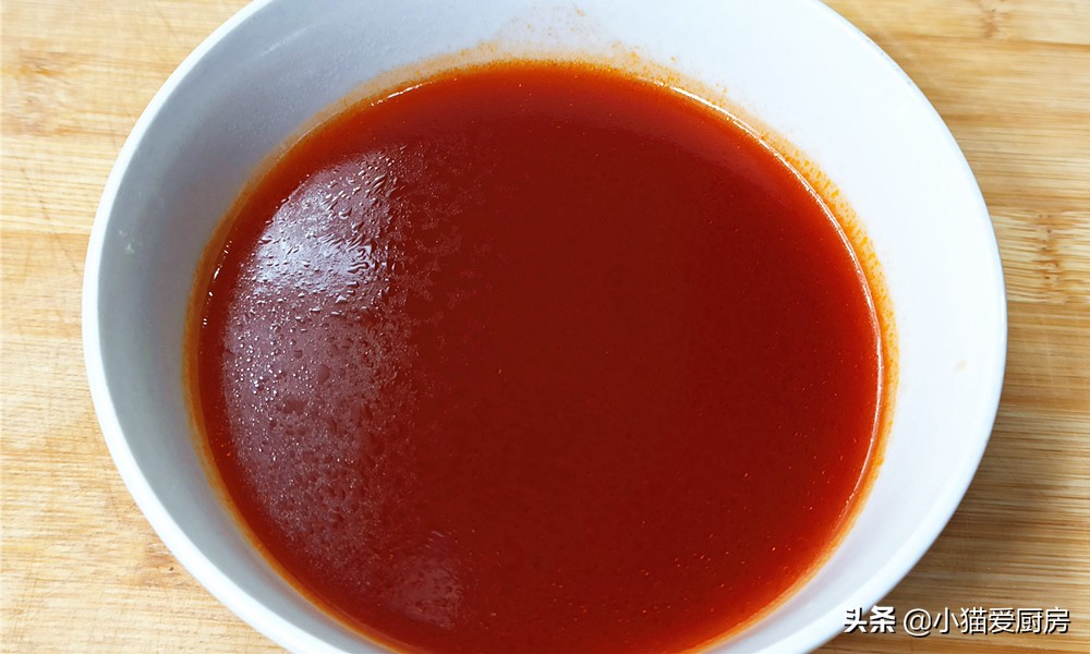 【制作出来】:西红柿酱1大勺、生抽2大勺、3大勺白糖、白醋4大勺、5大勺清水