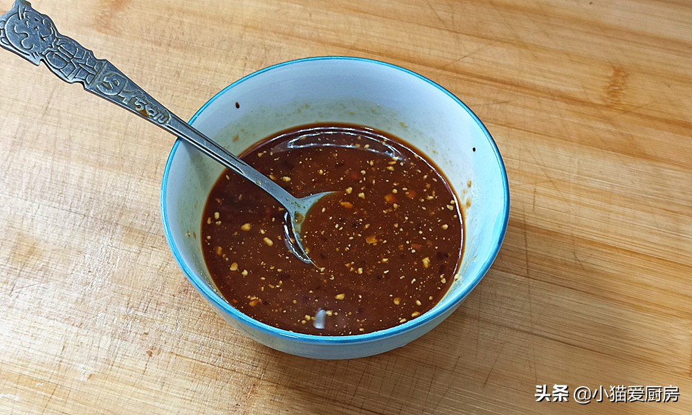 【步骤六】:取一个小碗,依次放入白腐乳1块、生抽3勺、老抽半勺、蚝油1勺、白糖1勺、料酒3勺搅拌均匀兑成调料汁备用。