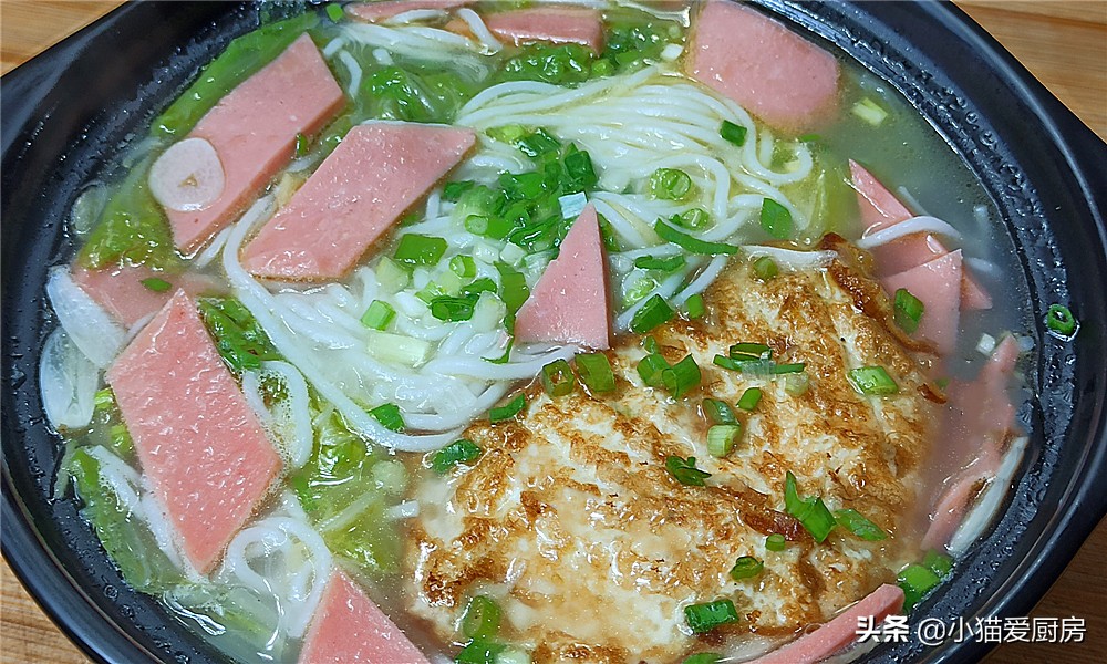 【制作主料】:新鲜米粉1把、鸡蛋1个、白菜几片、火腿肠半根、虾皮1勺