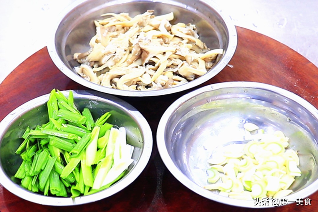 1.首先,我们准备适量的平菇,去除硬根后撕成小块。锅内烧水,放入一勺食盐入底味,水烧开以后把平菇放入锅中焯一下水,去除上面的杂质和土腥味,大约焯水30秒钟,平菇汆透以后倒出来,用清水多洗几遍,挤干水分备用。