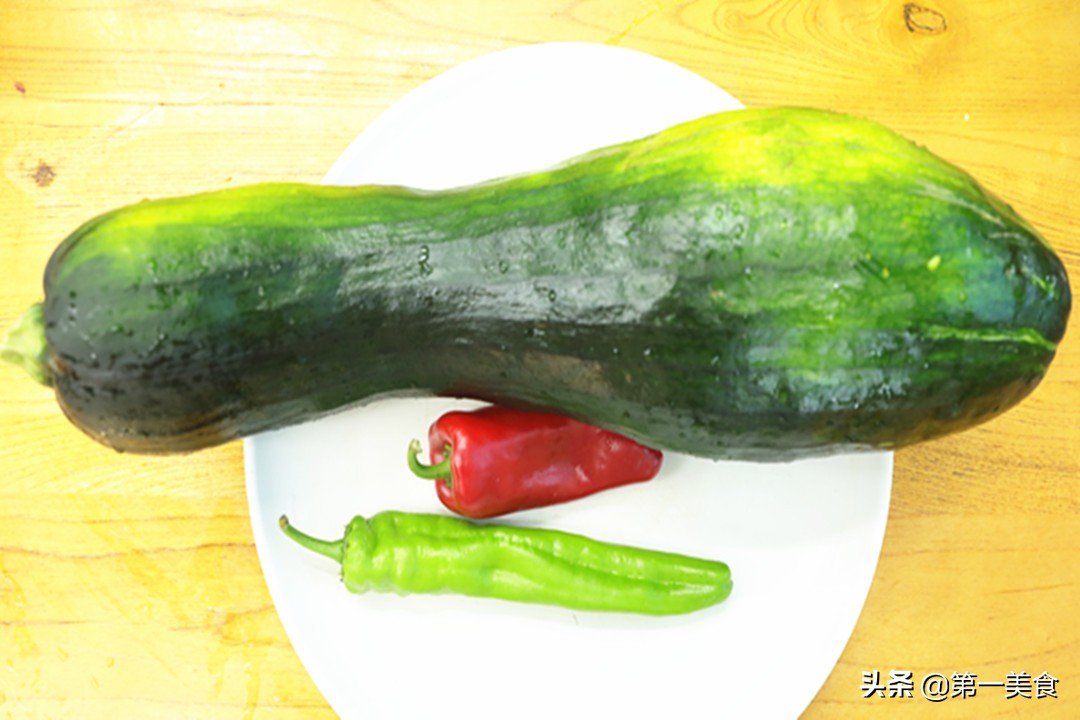 1.首先,我们准备一节嫩南瓜切成细丝,像火柴棍的粗细就可以了,太细的话炒的时候容易断、吃着不够脆,切好以后用清水浸泡洗干净,去除表层的黏液;再切一点青红椒丝用来搭配颜色;大葱切成圈、生姜切成片,做酸辣类、醋溜类的菜品都少不了葱姜,再准备适量的干辣椒段备用。