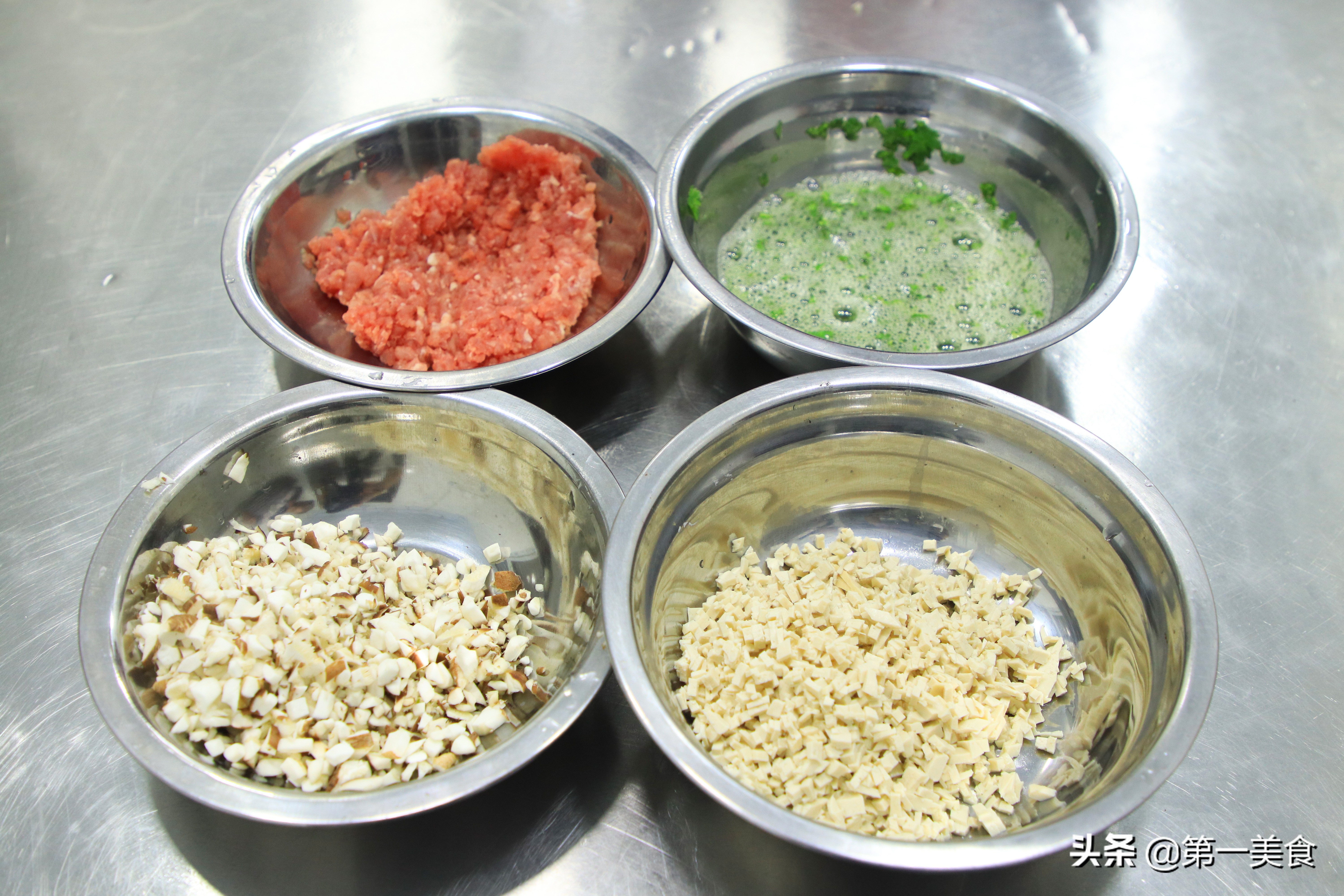 牛肉60克,剁成牛肉粒。香菜两根,切成香菜碎。豆腐成粒,香菇两个切成香菇粒。碗中打一个母鸡蛋筷子打散,倒入香菜碎,继续搅拌。