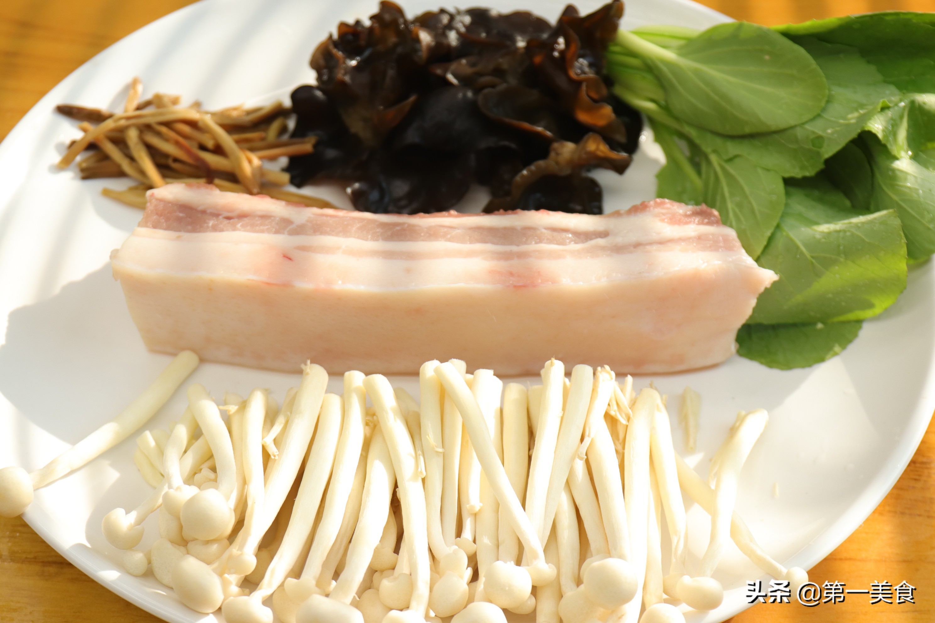 准备泡发的黄花菜和白玉菇