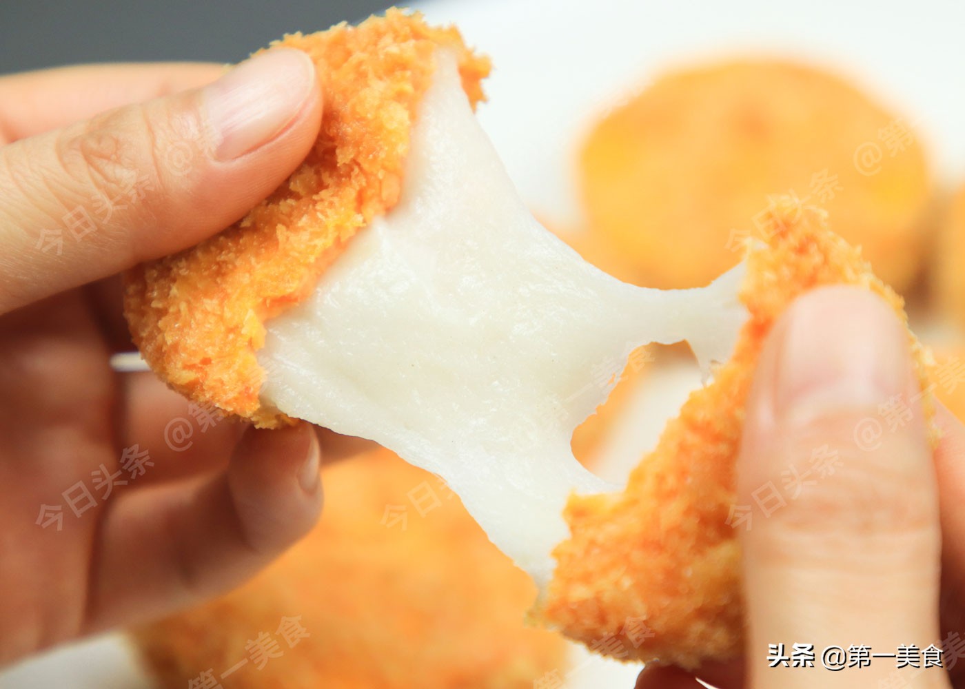 掰开一个,外面酥脆,里面拉丝香甜,比外面买的零食还馋人,学会了想吃零食自己做,再也不用出去买了。