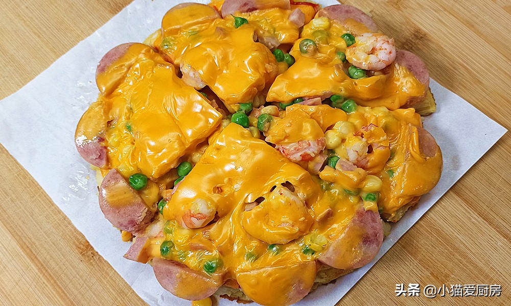 【步骤十】:差不多焖5分钟左右,基本上芝士都化了,基本上就可以了,然后取出来用刀切成小块就可以开吃啦!