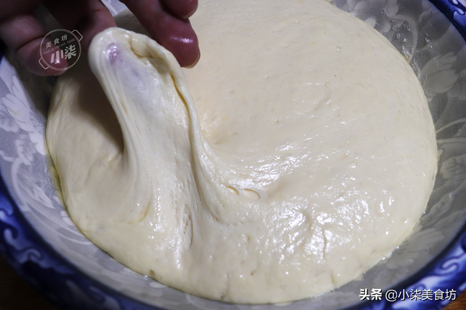 这是醒好的效果,用手轻轻拉出薄薄的膜,面的延展性非常的好,里面有丰富的蜂窝组织,说明面就醒好了。