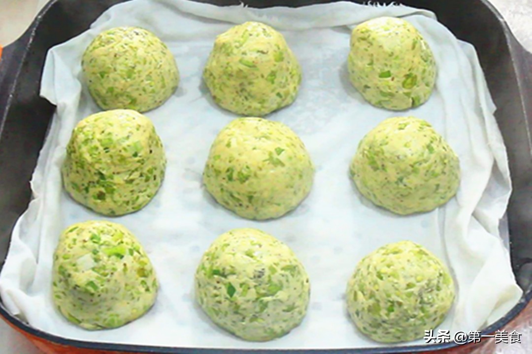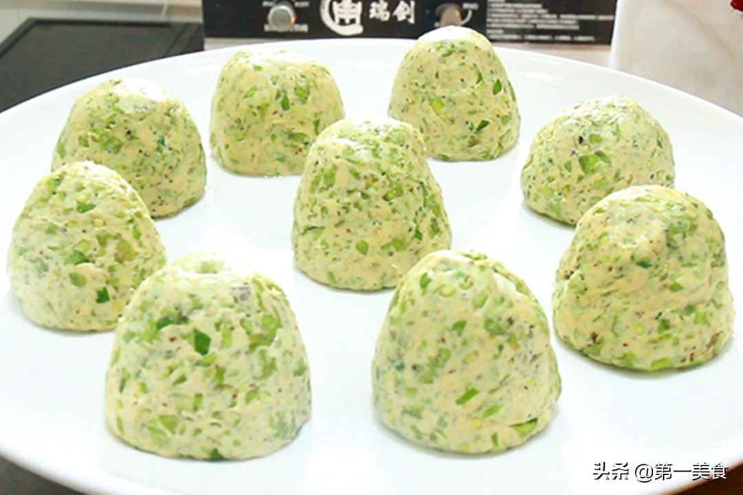 2.我们把榆钱从树杈上摘下来,放清水里洗干净、把水分控干放入盆中,加入葱花,打入一个鸡蛋,加入少许食盐、适量的香油搅拌均匀,做成内陷。