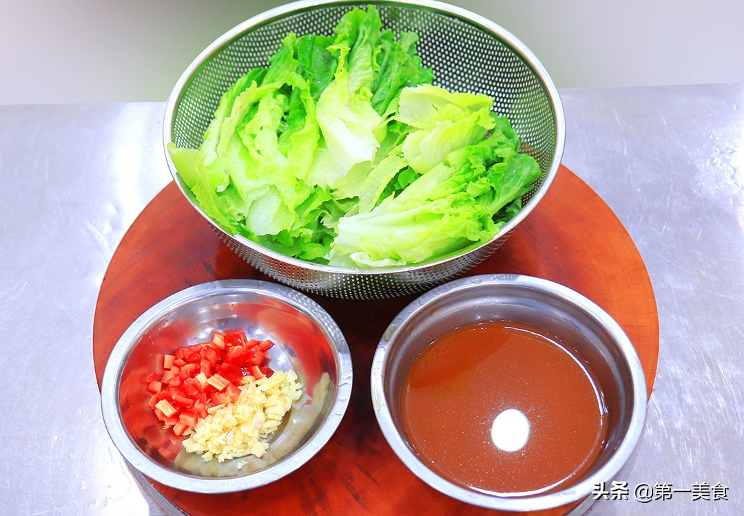 准备适量的生菜叶,清洗干净再切成宽条备用。