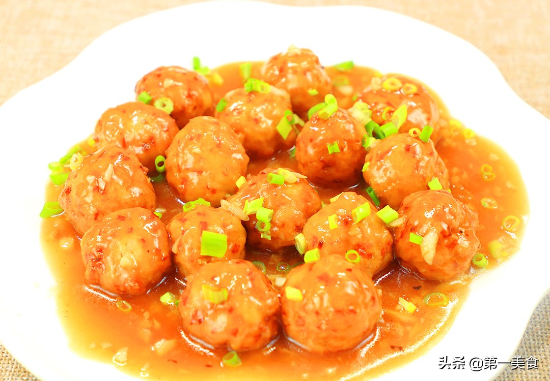 锅内留底油,放入蒜末煸炒一会儿,闻到蒜香味以后,把碗料倒入锅中搅拌均匀,料汁烧开以后倒入炸好的丸子,丸子均匀裹满料汁以后即可出锅,最后撒上葱花,一道金黄软糯的豆腐肉丸就做好了。