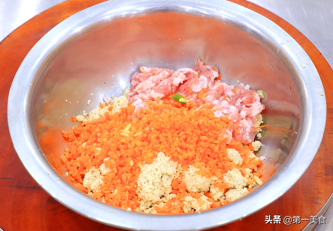 锅内烧油,油温五成热时,把丸子轻轻地放入锅中,保持小火慢慢炸,丸子炸焦、炸成金黄色时捞出来控油。