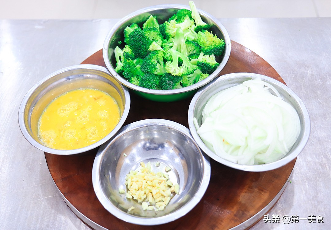 锅内再烧油,油烧热以后倒入洋葱和蒜末,转中火爆炒1分钟,炒出洋葱中的水分,把蒜末爆香,倒入西蓝花,加入食盐2克,生抽10克,颠锅翻炒给西蓝花和洋葱入味,再倒入鸡蛋翻炒几下即可出锅,一道清淡营养的洋葱炒西蓝花就做好了。