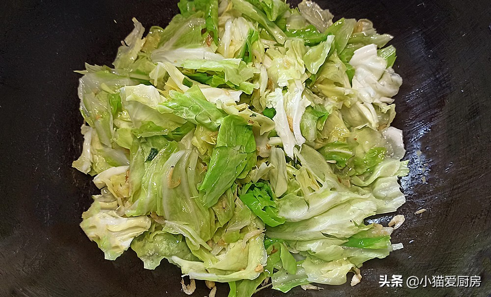 (4)包菜炒的时候要大火翻炒,大火炒出来口感和味道才好。
