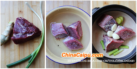 做法:牛肉先在冷水中浸泡二十分钟,把血沫泡出来并清洗干净。放入几粒大蒜和葱段、两片姜一起炖,大火烧开转中火炖煮40分钟,牛肉煮熟后捞出来,放凉切片。肉汤用滤网过滤,并加入酱油1/4勺,盐 1/2勺,砂糖 1勺,醋1.5勺,充分搅拌后放在冰箱里冷藏。