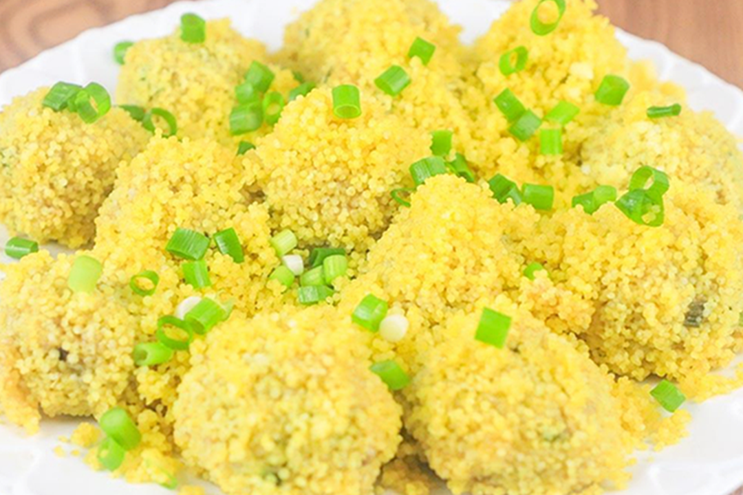 3.20分钟以后把小米肉丸取出来,色泽金黄、鲜香扑鼻,软糯好消化、好吃还解馋。