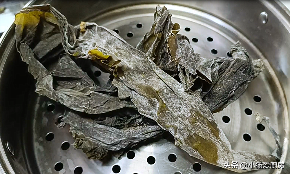 (1)海带要先放入锅中蒸10分钟,让海带回软,经过这样处理完的海带,最容易泡发,而且可以去除海带的腥味,同时蒸完的海带口感会更好。