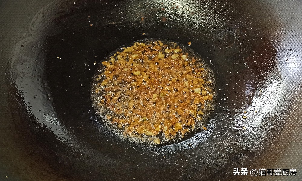 【步骤八】:重新起锅放少许油,放入蒜末炒出香味,放2勺生抽炒香。