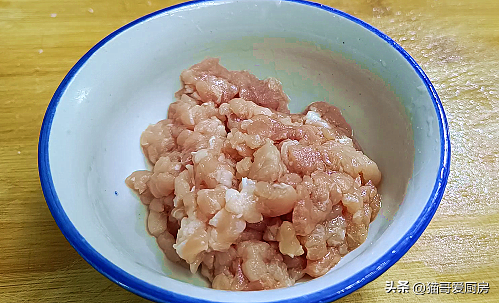 (3)炒肉末要冷油下锅,肉末才不会粘锅,最好用五花肉,五花肉肥瘦相间,有点油脂炒出来才香。