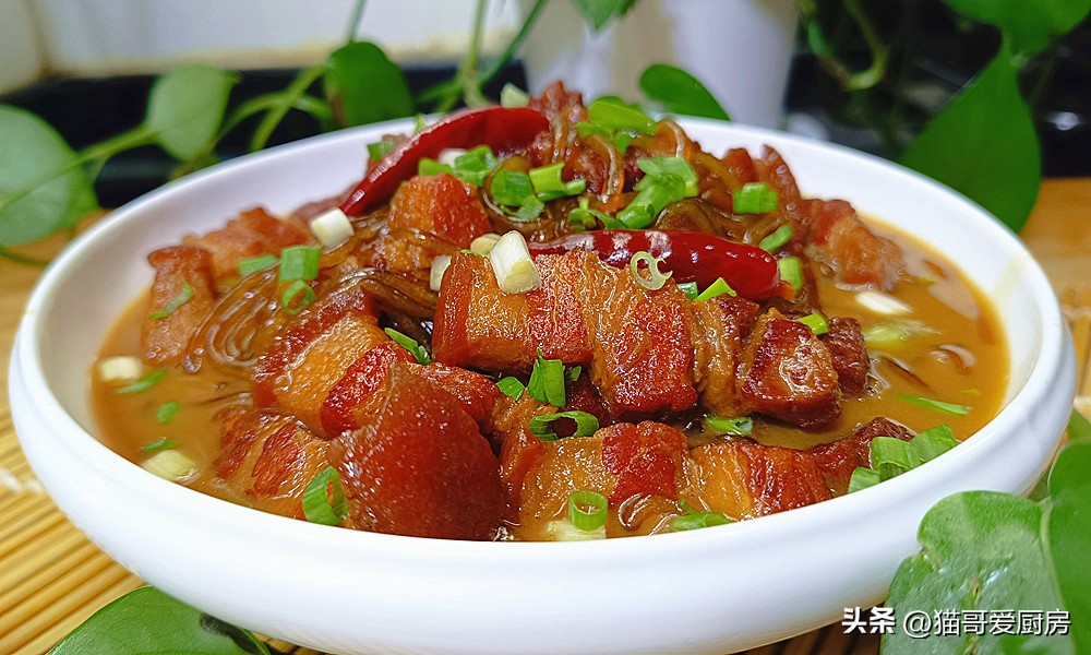 最开始的时候猪肉炖粉条,就是猪肉和粉条一起搭配的, 这道菜看似简单却有一定小技巧,像火候、猪肉选用、粉条怎么泡、下锅的时间,这些都非常有讲究,成菜的特点是,红亮的颜色,粉条吸收了猪肉的肉香味,Q弹爽滑,特别入味好吃比猪肉都香,猪肉软糯烂,而且肥而不腻,咬一口满嘴都香。
