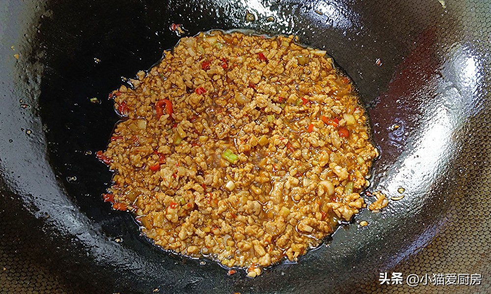 (4)肉末不要剁得太细,有点颗粒吃起来才香。