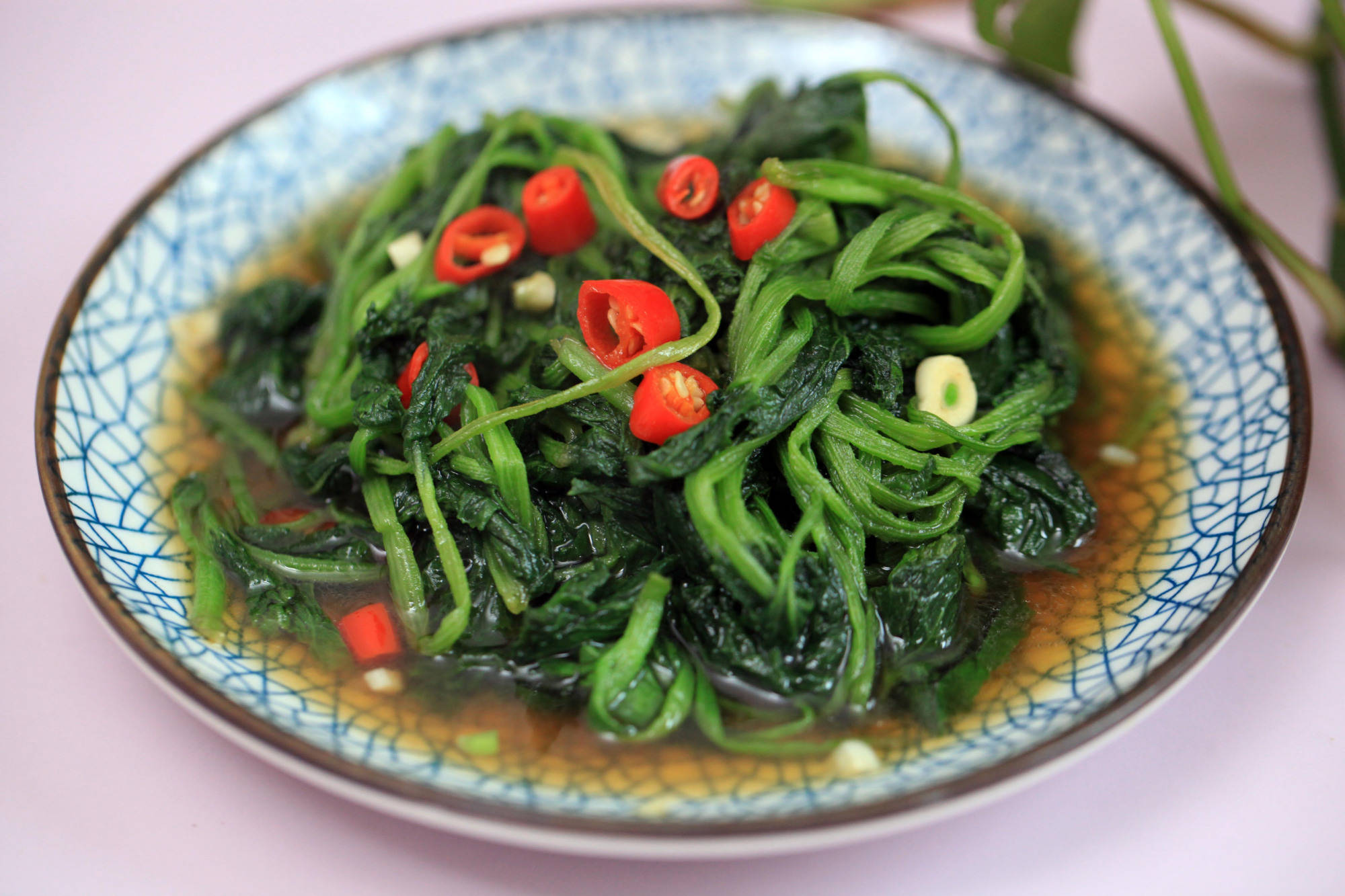 食材:南瓜尖、蒜瓣、桃园建民西瓜酱、辣椒、胡椒粉、盐