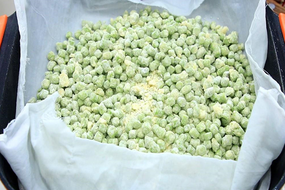 3.5分钟以后我们把豆角取出来,并用筷子快速抖散,然后加入鸡粉1克,淋入一点芝麻香油搅拌就可以了。