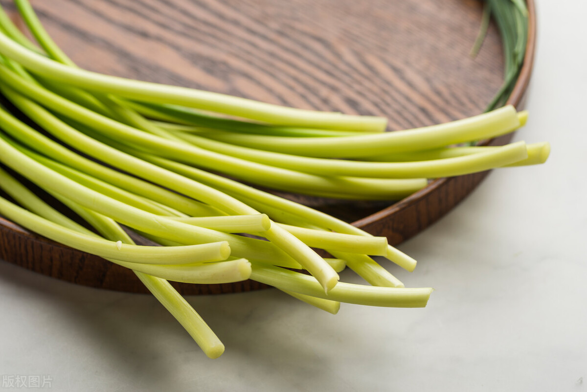 新鲜蒜薹的根部都是白色的,颜色比较鲜亮,但放了很长时间后,就会被氧化泛黄,这样的就不要买了。
