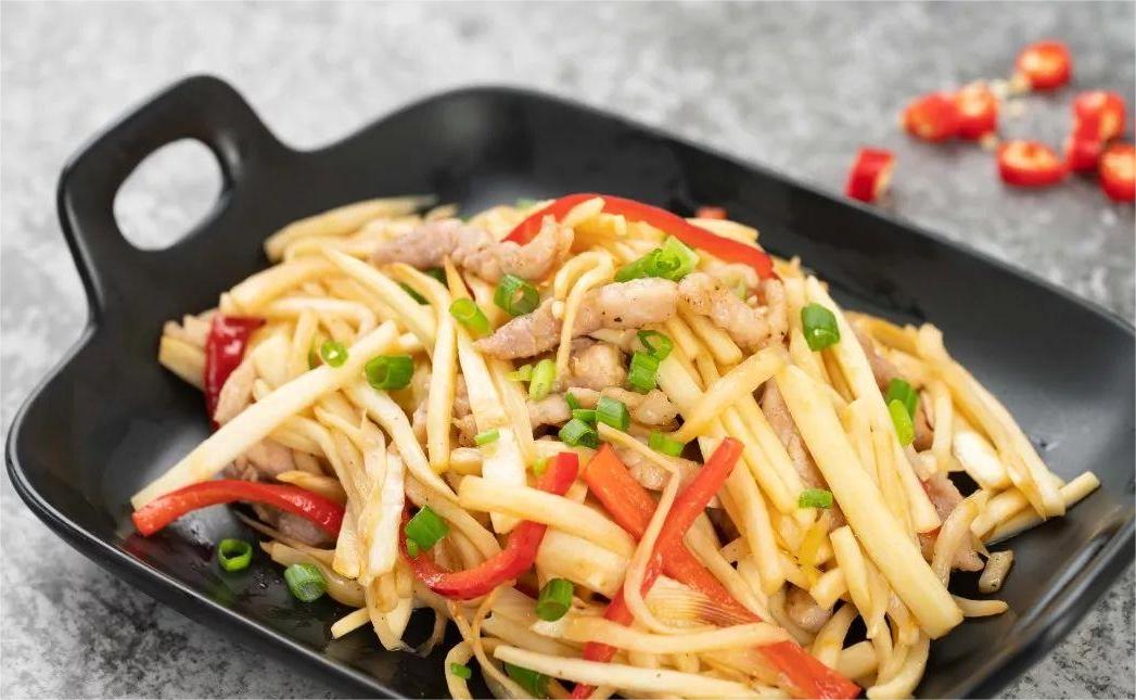做法:1、先把猪肉冲洗干净,去掉血水等杂质,切成肉丝,加入适量的酱油和料酒,腌制一会儿;