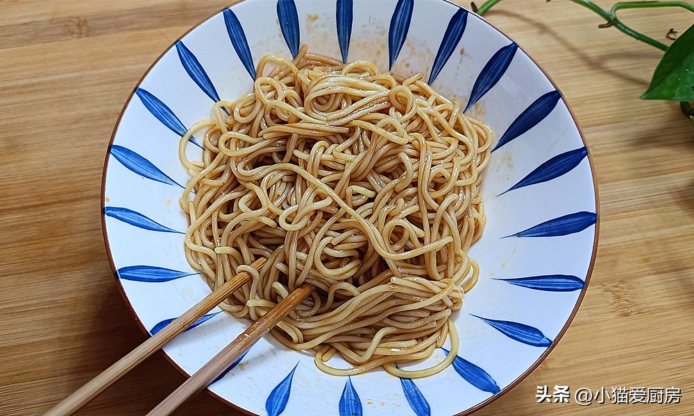 (3)面条沥干水分后,放入生抽、老抽、香油,既可以防止粘连,同时让面条提前入味。