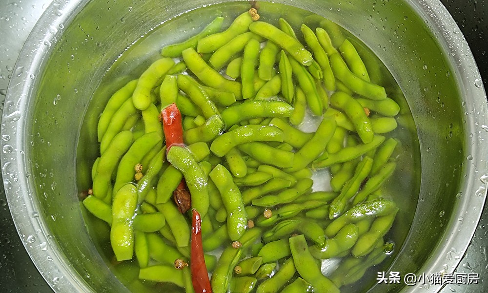 (3)煮毛豆要开水下锅,同时要放少许盐和植物油可以让毛豆颜色翠绿好看,煮的时间要把握好,一般5-6分钟。