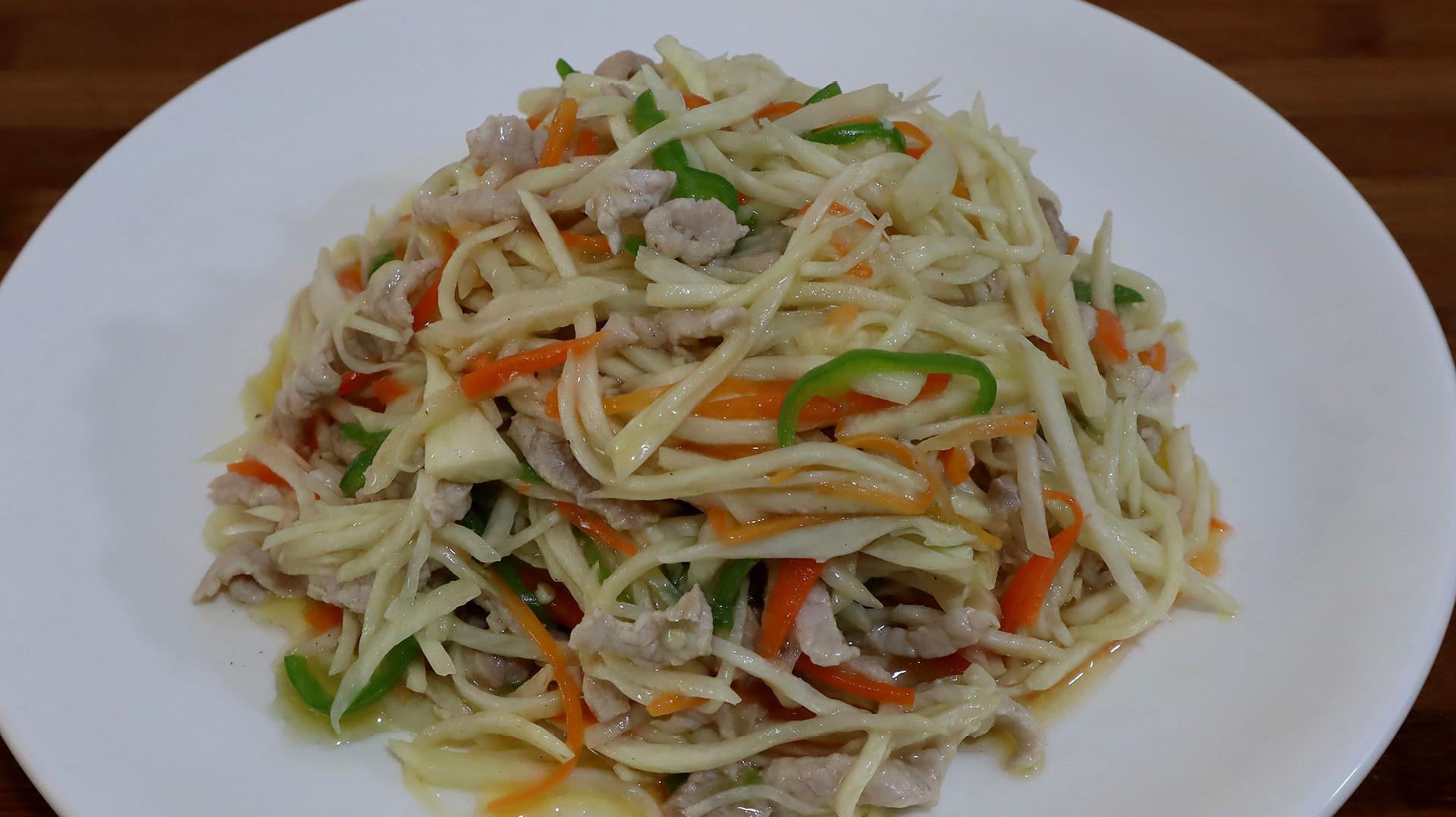 美味的芹菜茭白炒肉丝