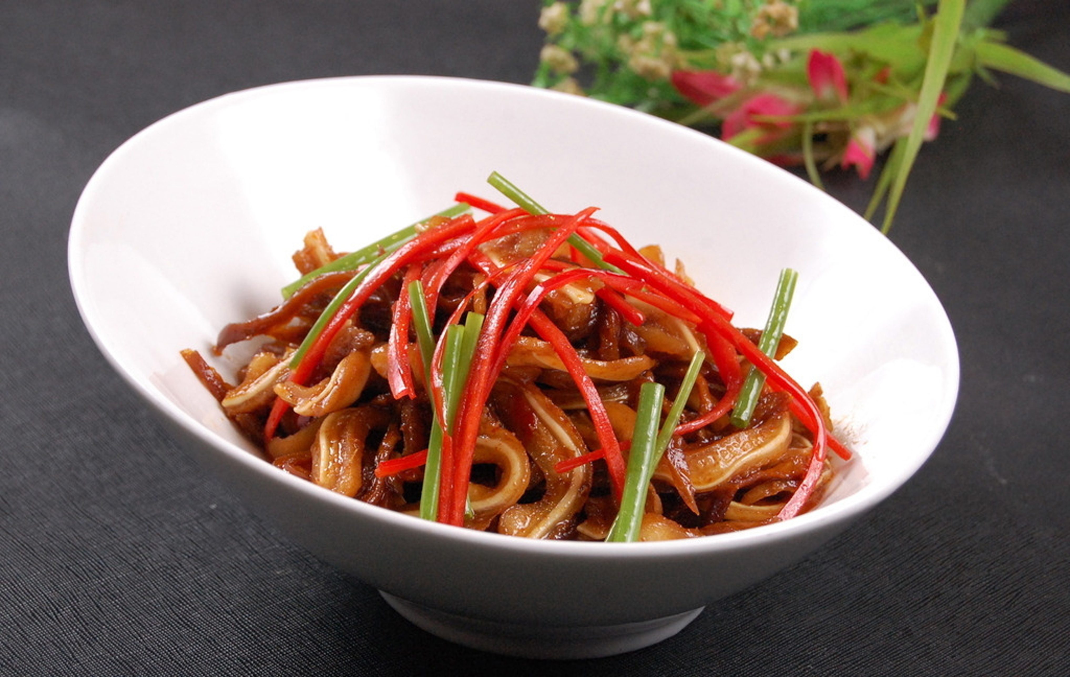 食材:卤好的猪耳、辣椒、芹菜、蒜瓣、料酒、蚝油、酱油、盐