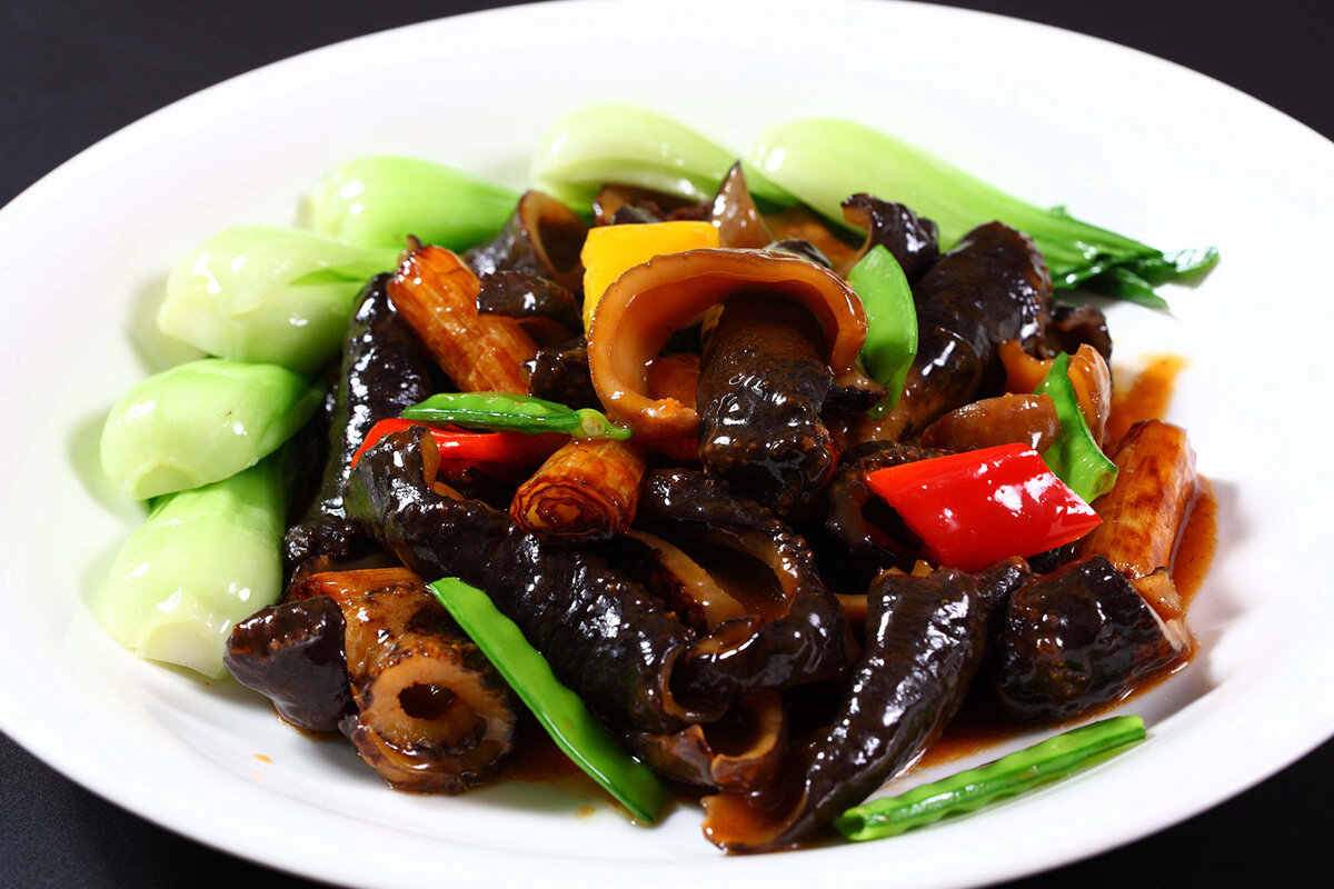 食材:海参、香菇、葱姜、料酒、酱油、蚝油、糖、盐