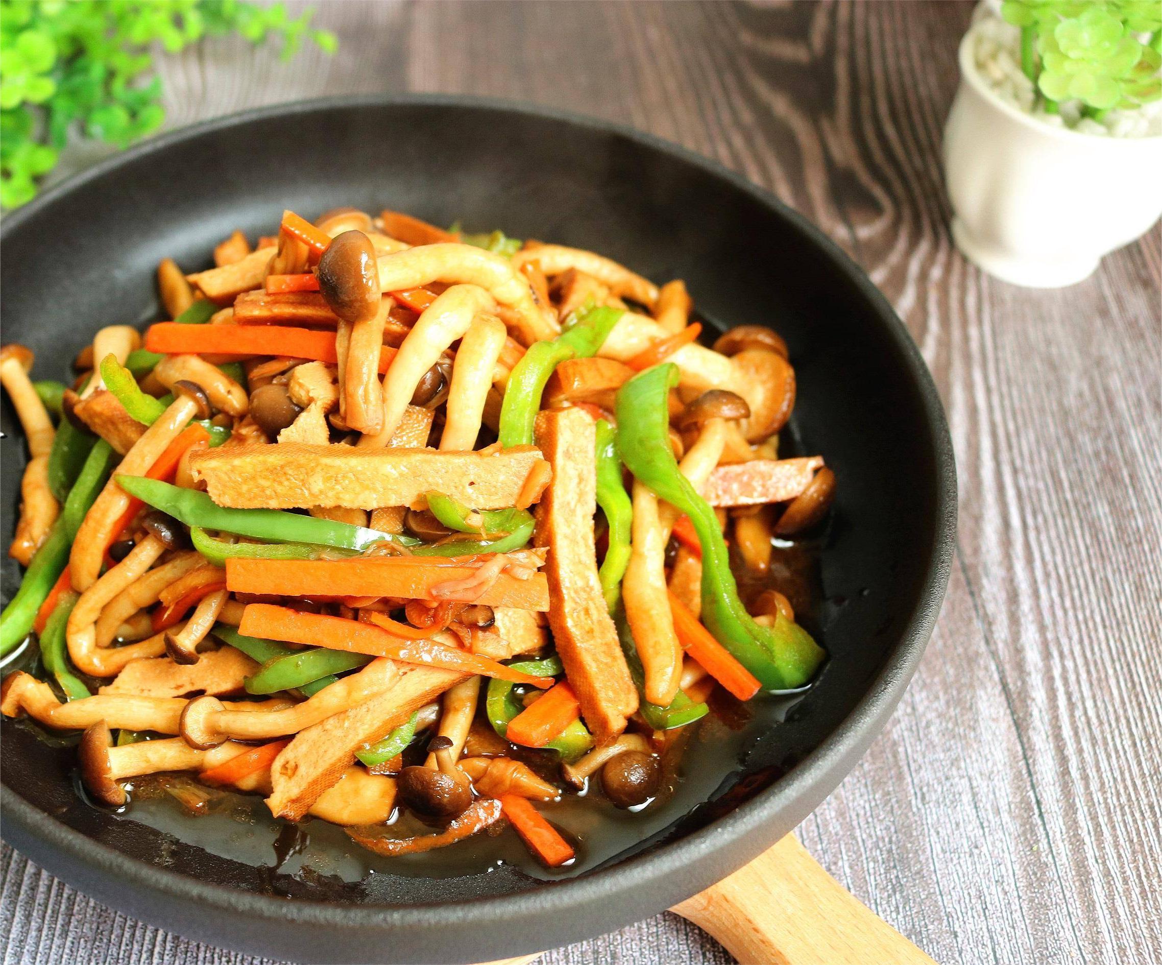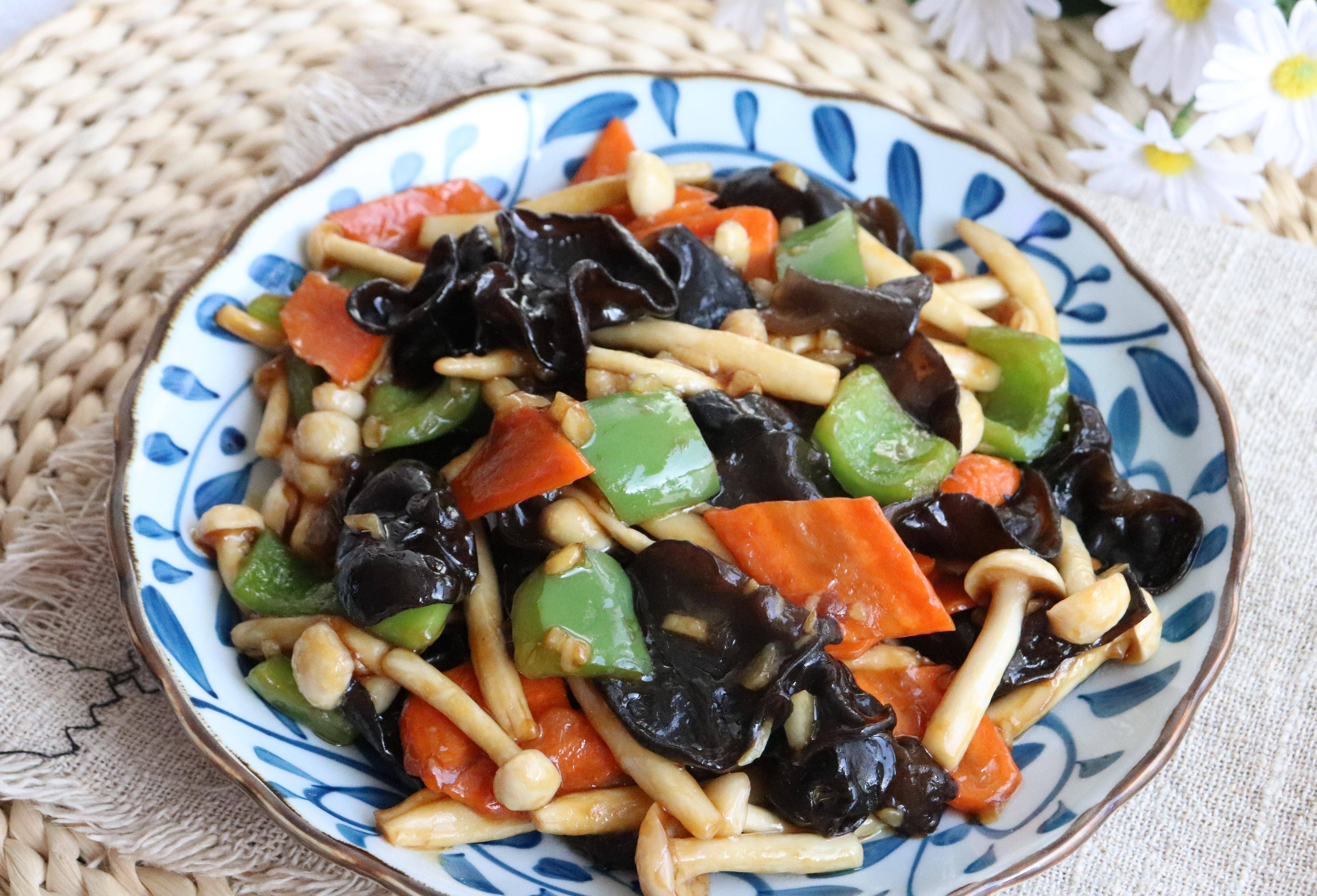 食材:胡萝卜、海鲜菇、西瓜酱、葱姜、木耳、辣椒、酱油、盐