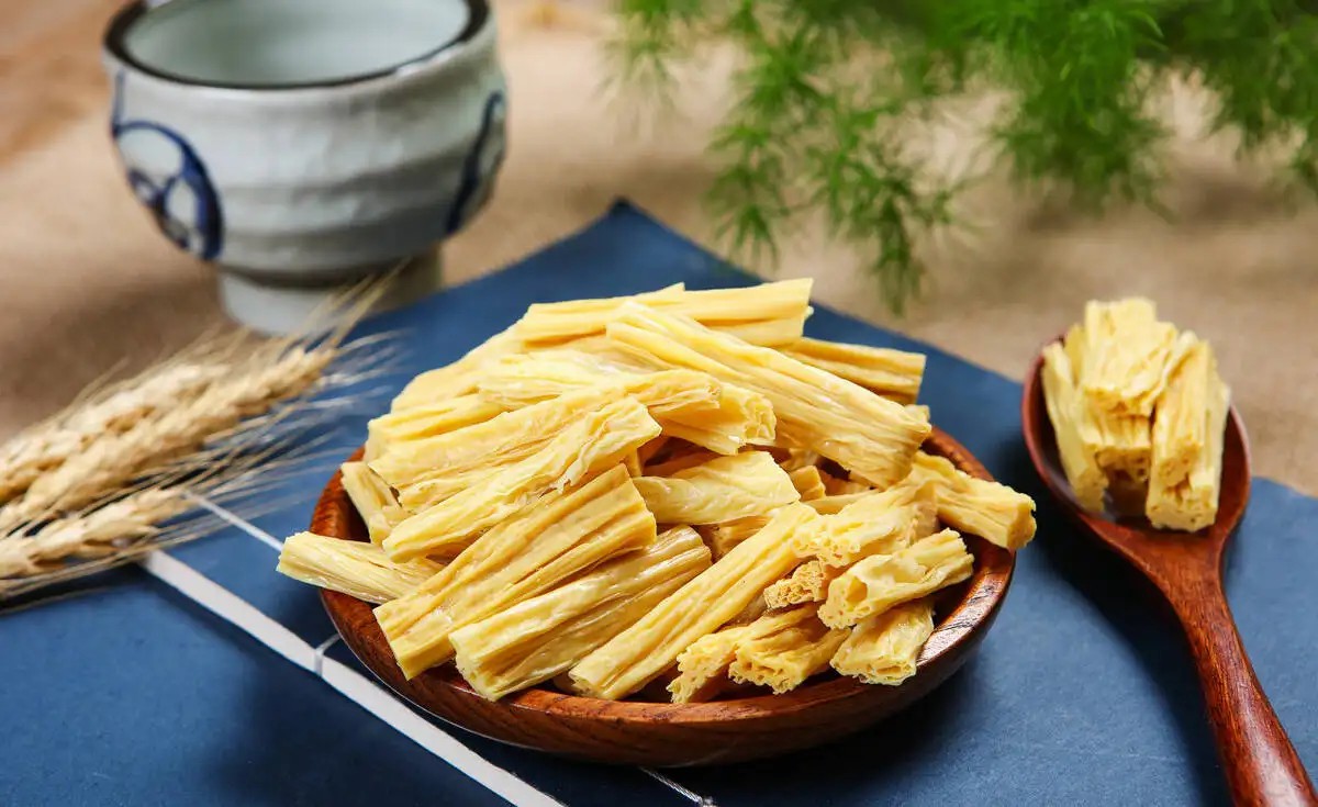 做法:1、先把食材处理好,把腐竹放入清水里面,浸泡一段时间,泡好之后,捞出来,沥干水,在用刀切成小段;备用;