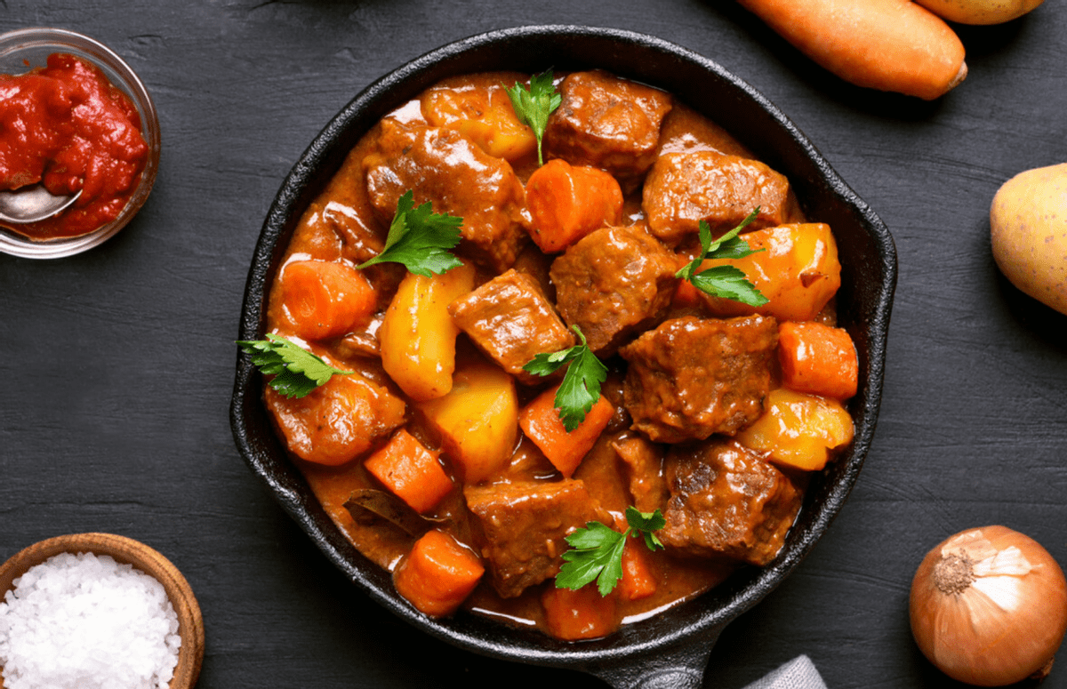 食材:牛肉、土豆、番茄、西瓜酱、葱姜、大料、料酒、酱油、盐