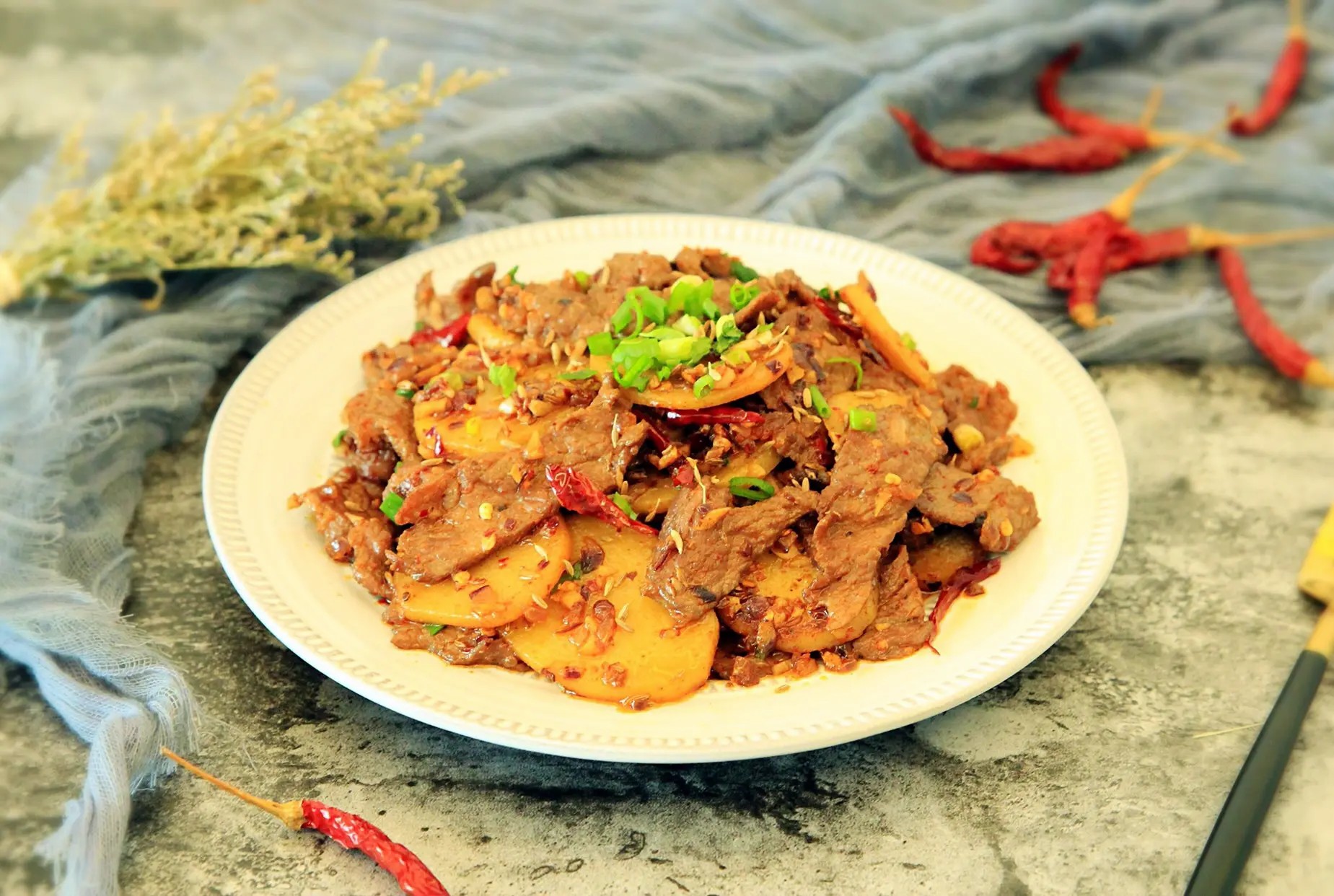 食材:牛肉、土豆、孜然粉、葱姜、洋葱、酱油、孜然粉、盐