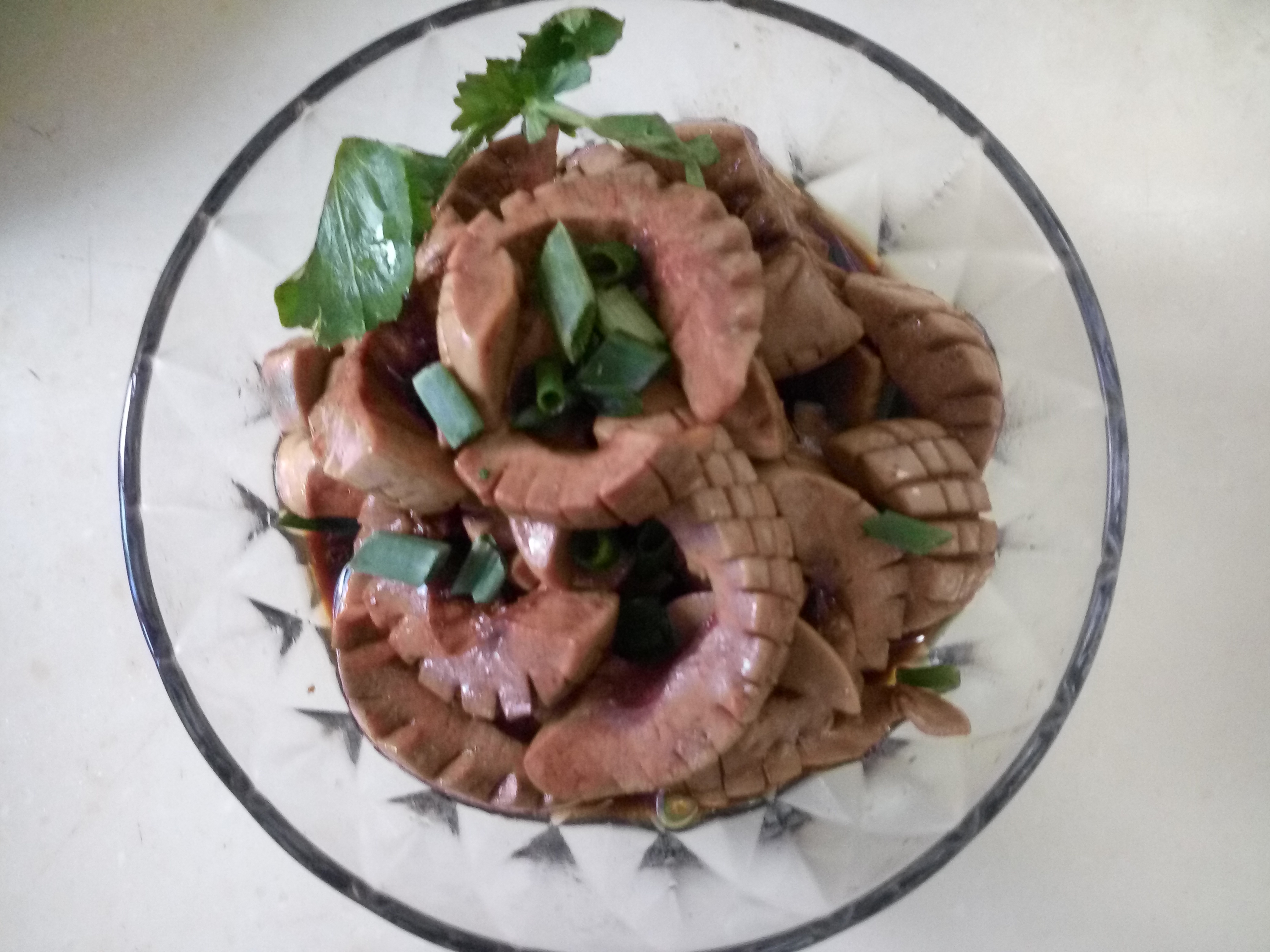 食材:猪腰、香菇夹馍酱、麻油、葱姜、香菜、酱油、料酒、盐