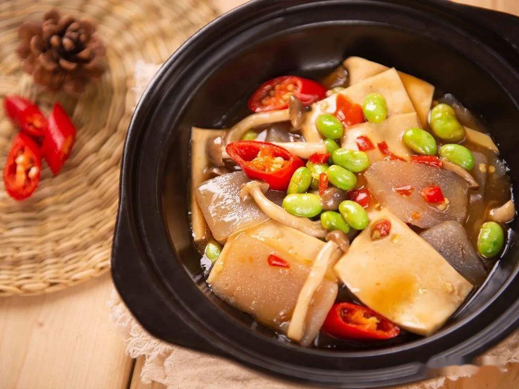 食材:魔芋、豆腐、牛肉耗辣椒、胡萝卜、金针菇、竹笋、辣椒、葱姜、酱油、蚝油、胡椒粉、盐