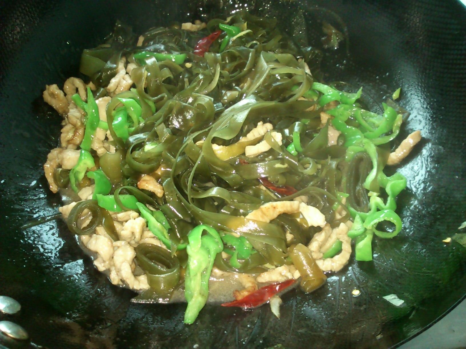 食材:海带、西瓜酱、猪肉、豆干、辣椒、葱姜蒜、胡椒粉、酱油、白糖、盐
