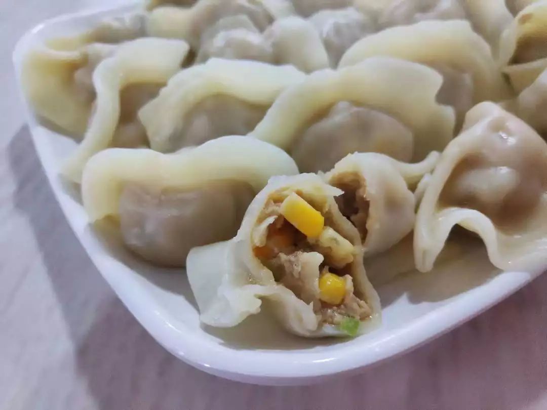 食材:猪肉、牛肉耗辣椒、洋葱、玉米粒、饺子皮、葱姜、酱油、蚝油、香油、胡椒粉、盐