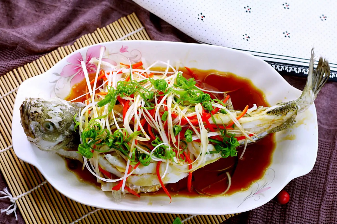 食材:鲈鱼、胡萝卜、葱姜、西瓜酱、蒸鱼豉油、料酒