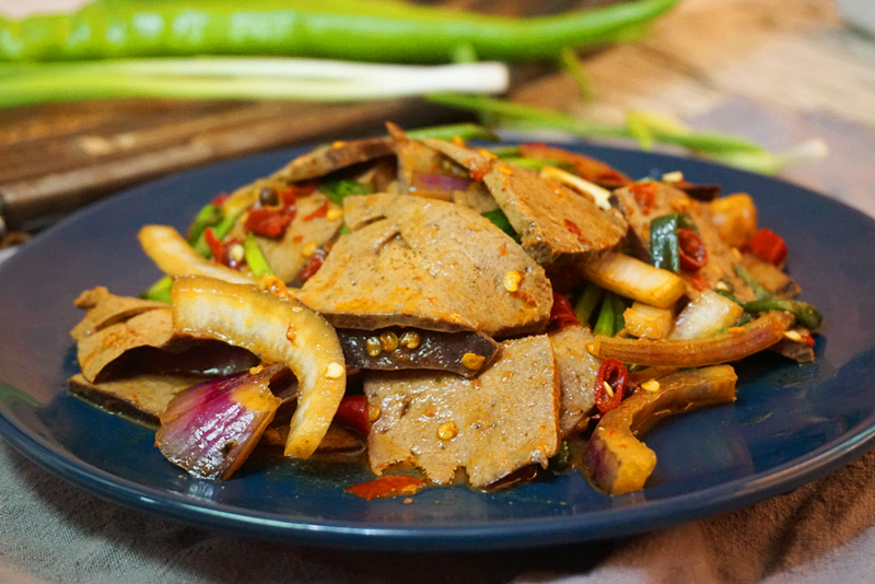 食材:猪肝、咖喱、西瓜酱、葱姜蒜、辣椒、蚝油、料酒、胡椒粉、香油、盐